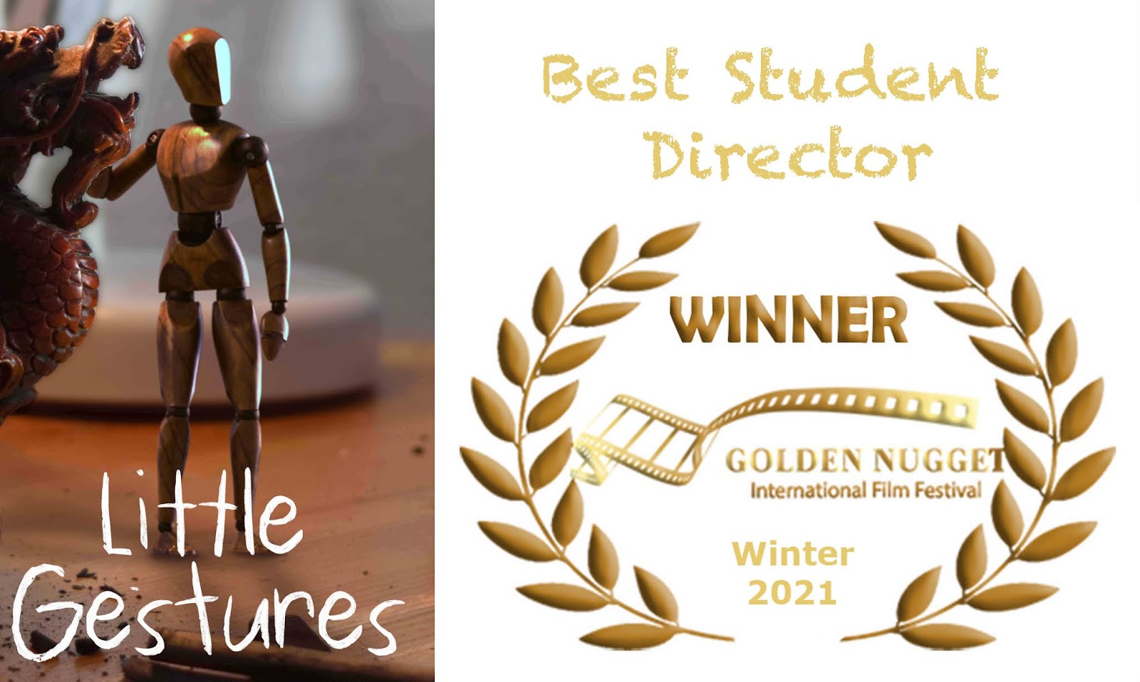 "Little Gestures" was completed as part of the third year animation Module PR6001, a Studio Project worth 60 Credits, overseen by UG Program Leader Michael Davies. In PR6001 our animation students and VFX students combine forces to produce a short film combining live action and animation, shooting live action plates and then integrating these with animation, tracking the assets to create a seamless composite.